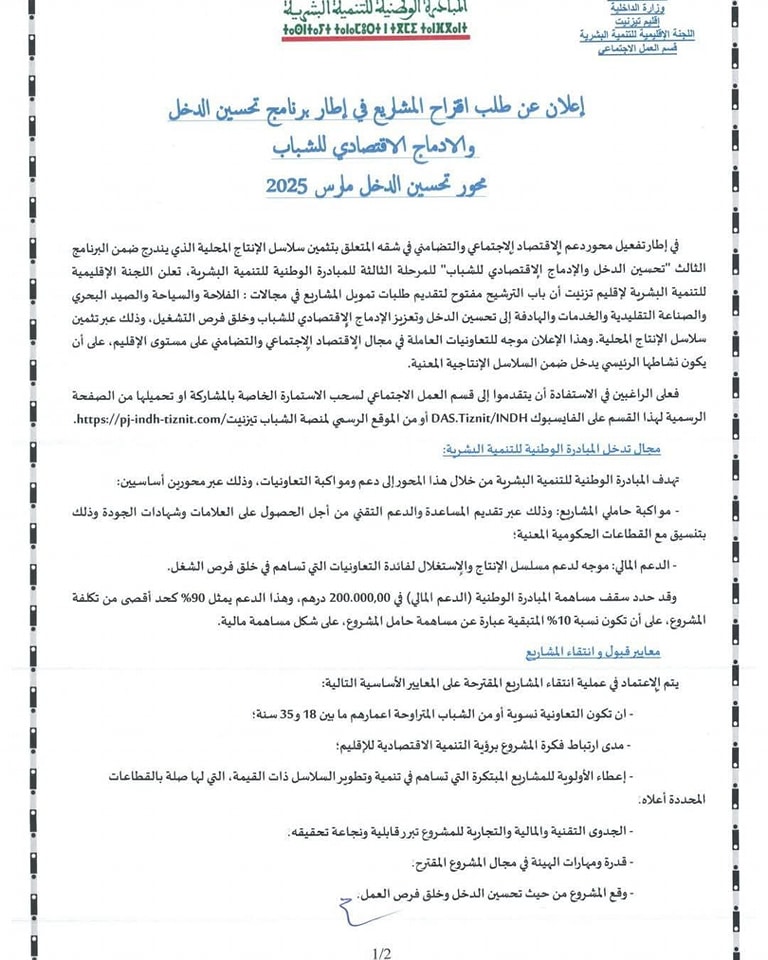 إعلان عن طلب اقتراح المشاريع في اطار برنامج تحسين الدخل و الادماج الاقتصادي للشباب - محور تحسين الدخل