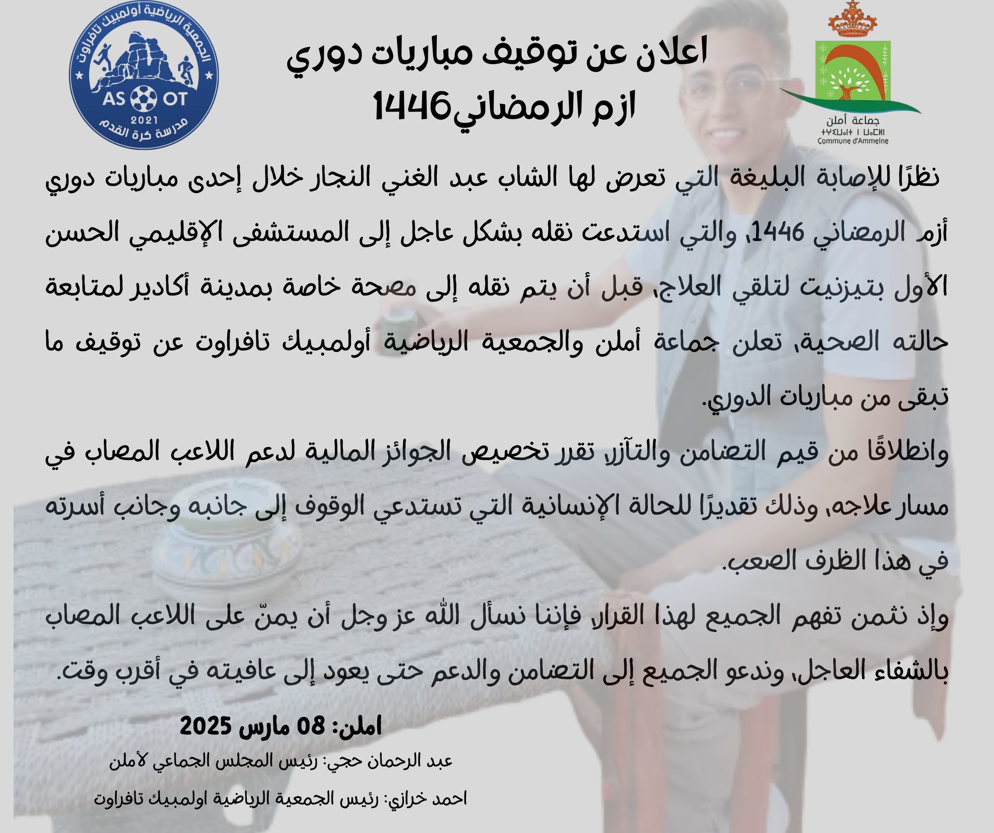 اعلان عن توقيف مباريات دوري ازم الرمضاني 1446